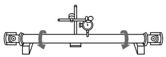 17. 如圖所示的傳動軸檢測,是指下列那一項目?(A)傳動軸軸向間隙 (B)傳動軸徑向間隙 (C) 傳動軸外徑 (D)傳動軸彎曲度。
