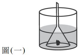 15. 將一小塊的鈉金屬放置於一個空燒杯中,上面覆蓋一支倒扣的漏斗,將含有酚酞的蒸餾水溶液小心倒入燒杯,讓水溶液滲進漏斗中,如圖 ( 一 ) ,假設漏斗在過程中不會有任何形 變與移動,且不參與反應,則下列敘述哪些正確?甲:鈉碰到水溶液後,會起劇烈反應,產生氣體乙:含有酚酞指示劑的蒸餾水溶液呈桃紅色丙:鈉金屬周圍的水溶液會變成橘黃色丁:在漏斗頂端點火會燃燒戊:本實驗是一種氧化還原反應 (A) 甲、乙 (B) 甲、丁、戊 (C) 乙、丙、戊 (D) 丙、丁
