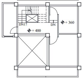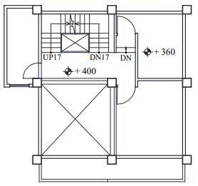 38. 本住宅內部有一座從一樓通往頂樓的U形樓梯。下列何者為此建築正確的二樓平面圖? (A) (B) (C) (D)