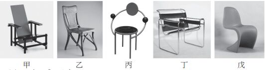 24. 傢俱設計課程中,老師要求同學將以下甲、乙、丙、丁、戊五張圖所代表的設計風格, 依其時間演進先後順序排列,下列何者正確? (A) 乙→甲→丁→戊→丙 (B) 乙→丙→甲→丁→戊 (C) 丙→甲→乙→丁→戊 (D) 丙→乙→丁→戊→甲