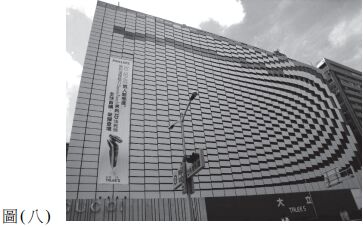 29. 有一面建築外牆的圖案構成如圖(八),下列何者為其主要造形元素構成方式? (A) 漸變(Gradation) (B) 平衡(Balance ) (C) 對稱(Symmetry) (D) 重疊(Overlap)