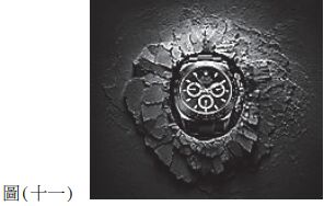 38. 圖 ( 十一 ) 為攝影公司拍攝的商品照,攝影師把手錶置放在粗糙的岩石上拍攝,藉此凸顯手錶的精緻感,從美的形式原理判斷,攝影師所使用的拍攝手法為下列何種原理? (A) 對稱(Symmetry) (B) 反覆(Repetition) (C) 次序(Order) (D) 對比(Contrast)