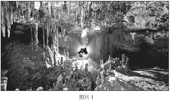 24. 照片 1 是猶加敦半島上被水淹沒的洞穴,洞穴之間彼此相連,發展出特殊的潛水活動 (如照片 1 中央的潛水人)。該地景發育的作用力,與臺灣下列哪種地形的成因最相似? (A)澎湖西嶼的柱狀節理地形 (B)屏東墾丁公園的溶蝕地形 (C)臺東長濱沿岸的海蝕地形 (D)東沙潟湖外圍的環礁地形