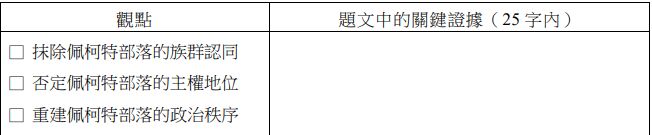 49. 依據題文,英軍對佩柯特平民從不攻擊轉為屠殺,下列哪項解釋觀點最能說明其立場變化?請先在左欄勾選觀點,並在右欄寫出題文中的關鍵證據。