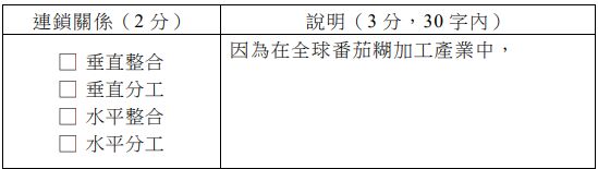 58. 根據題文,勾選一項該加工產業最主要呈現的連鎖關係(2 分),並從圖 6 所呈現的產品與原料關係說明判斷的依據。