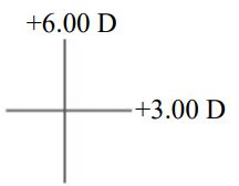 當鏡片的左方 100 cm 處有一個物體,下列選項何者不適當? (A)這個鏡片可以表示為:+3.00DS+3.00DC×180 (B)在垂直經緯度(vertical meridian)有+6.00 D 的屈光度(power) (C)在水平經緯度(horizontal meridian)有+3.00 D 的屈光度 (D)該物體的影像會在鏡片右方 20 cm 處形成垂直線