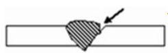 如左圖箭頭所指之缺陷是 (A)夾渣 (B)銲蝕 (C)滲透不足 (D)搭疊。