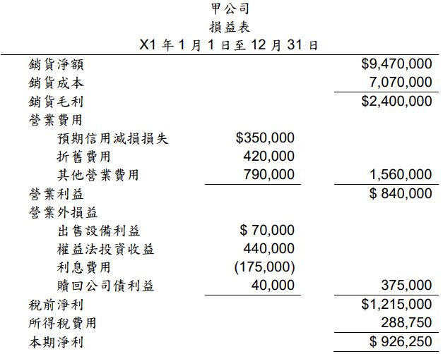 試作:計算甲公司 X1 年度營業活動現金流量金額。 (12 分)
