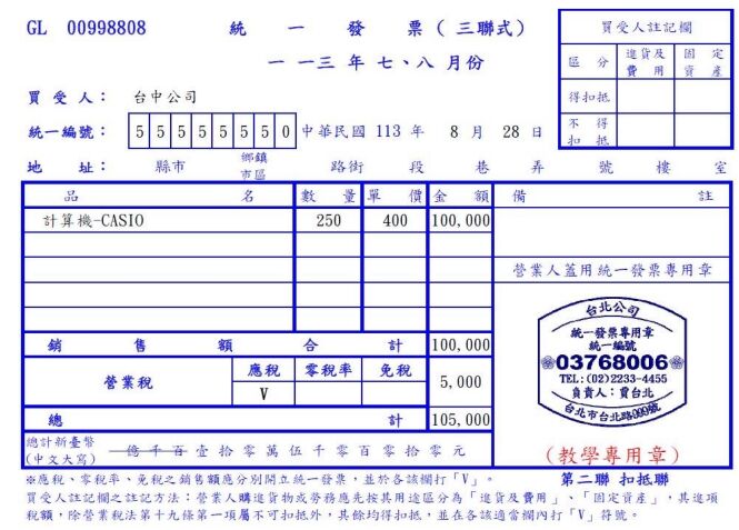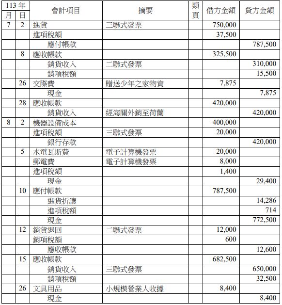 3. 7 月 12 日賒購商品 100,000 元,借方誤記為文具用品。