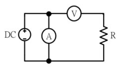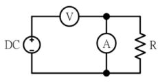 66. 利用電壓表、電流表,測量未知電阻R,如該電阻係屬低電阻時,為減少誤差則宜採用下列何種接法? (A) (B) (C) (D) 。