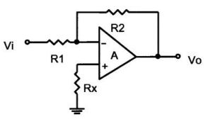 28. 如下圖電路所示,為一非反相運算放大器,假設此運算放大器具無限大輸入阻抗及零輸出阻抗,則其回授因素β值為: