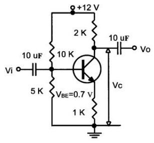 22. 如下圖電路所示,設電晶體β=100,則其集極對地的直流電壓 V