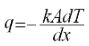 ,其中κ表導熱度(thermal conductivity),下列敘述何者正確 (A)式中負號表熱流方向與溫度梯度方向相反 (B)熱傳方向是從低溫傳至高溫 (C)該式為熱對流關係式 (D)κ值大小與溫度無關 。