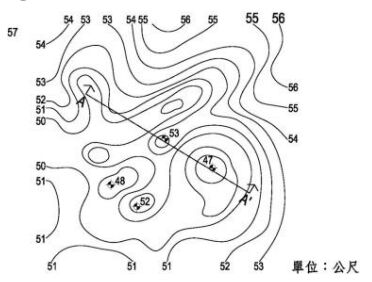 56. 下圖中等高線平面圖中的等高線間距為何?