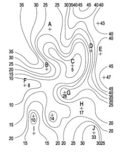54. 等高距是: (A)兩等高線間之水平距離 (B)兩等高線間的整數垂直距離 (C)兩等高線間的不同的垂直距離 (D)等高線與參考平面間的垂直距離 。
