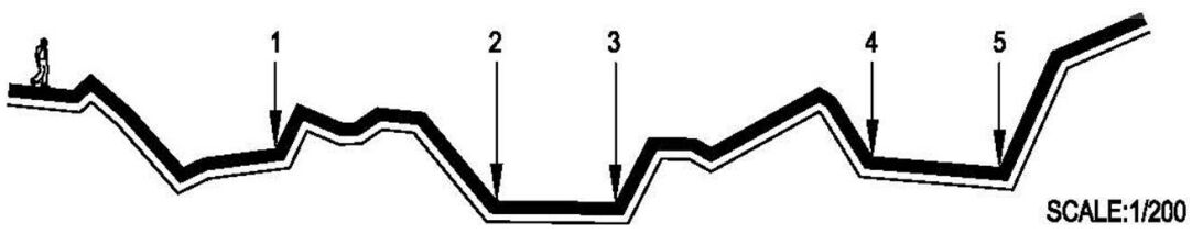 69. 下圖中何點最適合安置 5 公尺高建築物而可得到最佳視野及與環境調合?