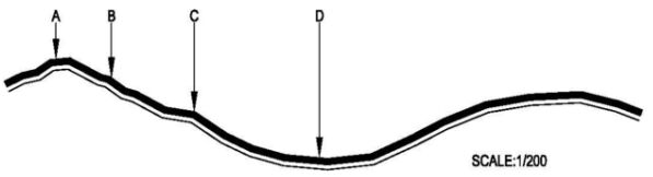 (A)排水洩洪道 (B)高點(C)在挖方區域 (D)在填方區域 。