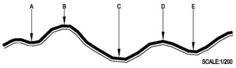 75. 如下剖面圖哪種舖面表面,最難行走? (A)