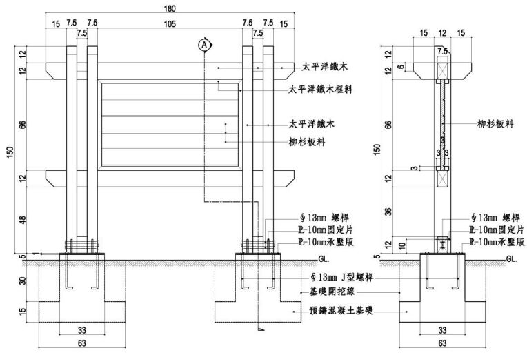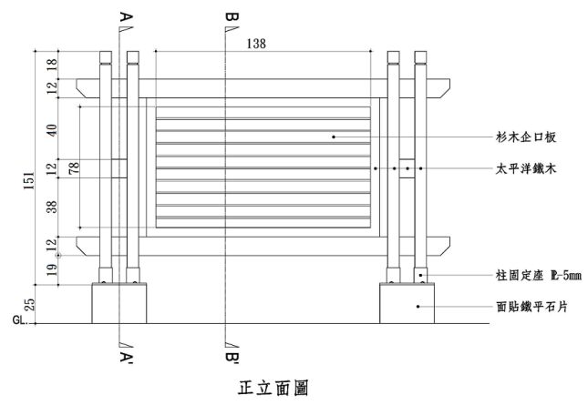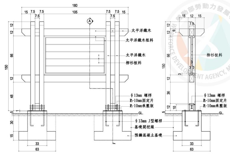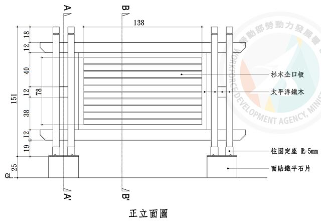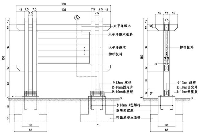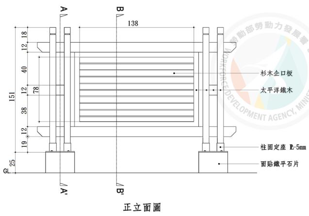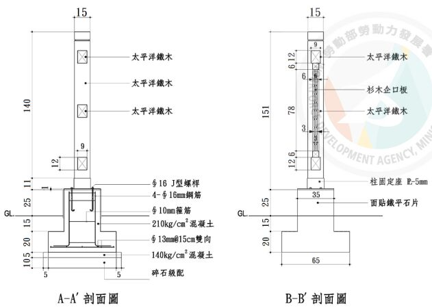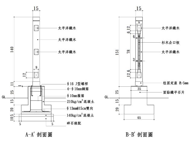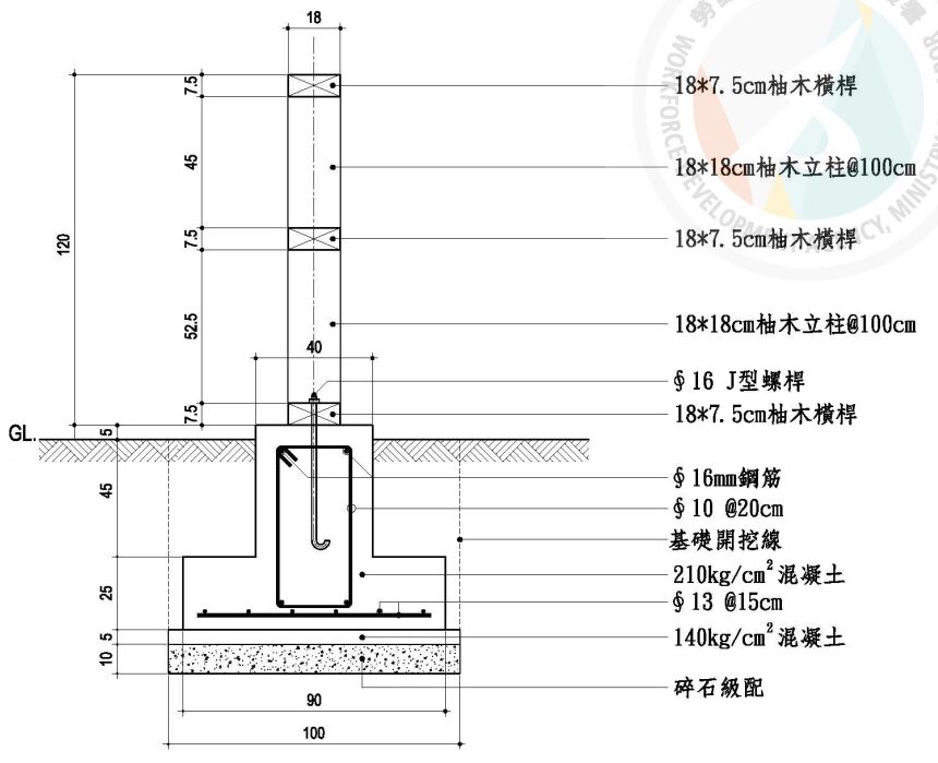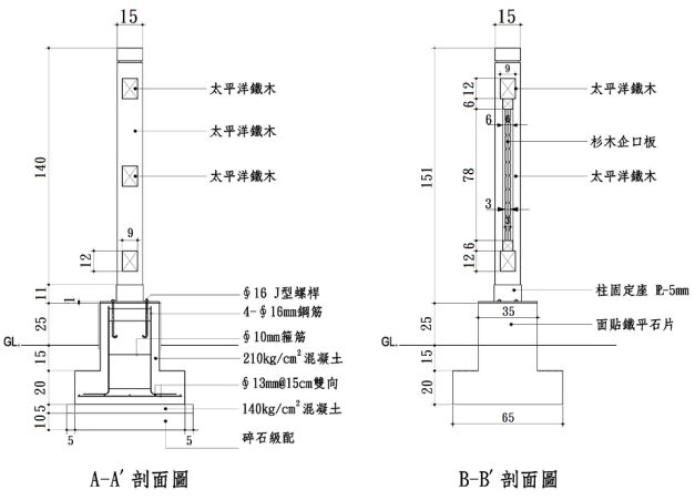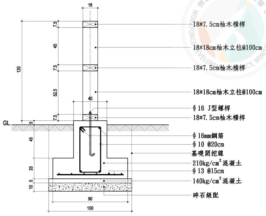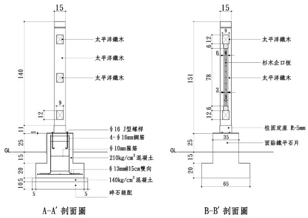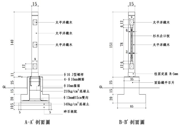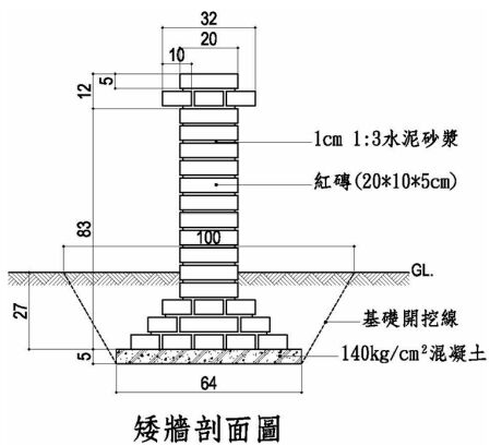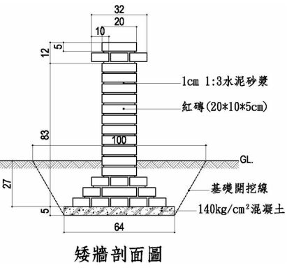 (C)清水磚矮牆距離 GL 高度為 68cm (D)澆置 140kgf/cm