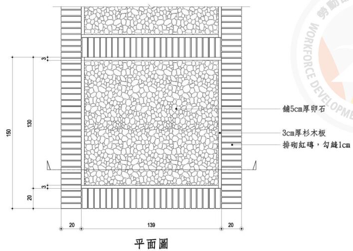 36. 下圖舖面之每 1.5m 單位長所需之卵石數量約為_________m