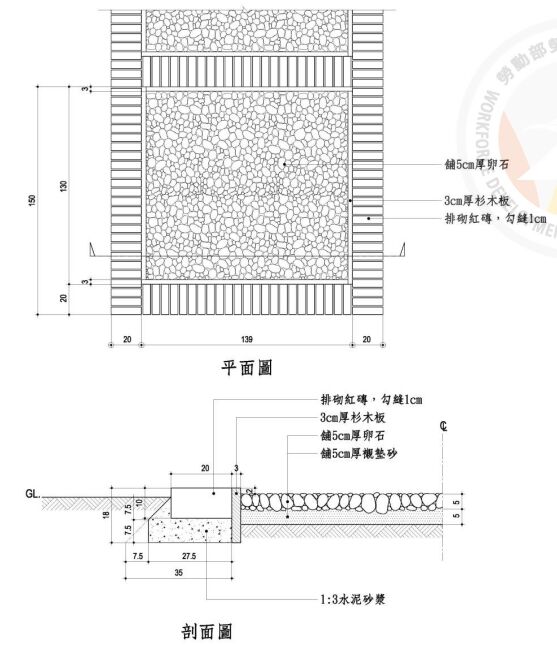 62. 請參考下圖步道平面、剖面及分解圖,如不計損耗,請估算施作所需材料,則下列敘述哪些為正確?