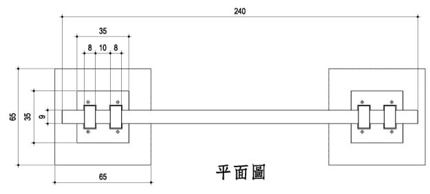(A)每一承壓版上各焊接一片固定片 (B)依據圖示作法,J 型螺桿為預埋於混凝土基座 (C)承壓版長寬為 33*33 ㎝,厚度為 10㎜ (D)固定片長寬為 12*7.5 ㎝,厚度為 10 ㎜ 。