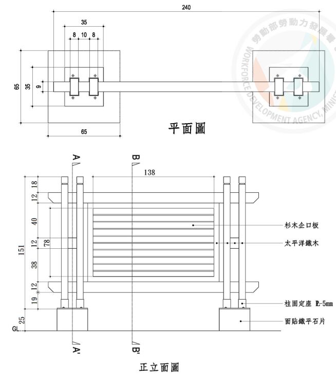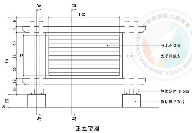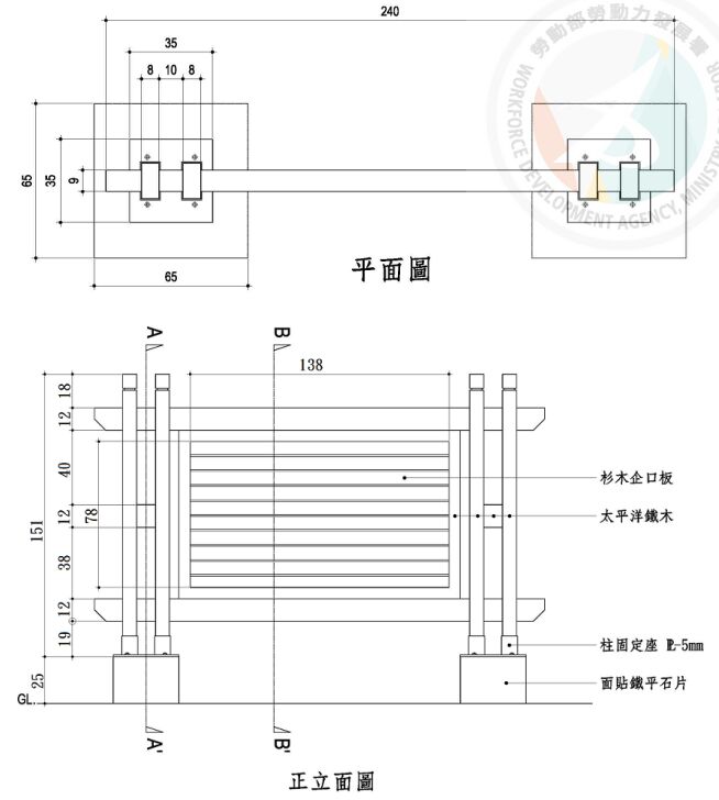 58. 請參考下圖木製座椅平、立、剖面圖,估算所需材料,則下列敘述哪些為正確?