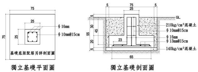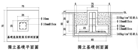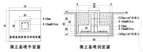 (B)基礎挖土深度約 55cm (C)所需模板數量約 2.5m