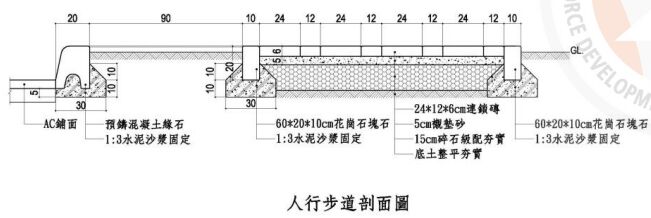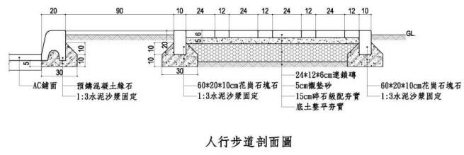 53. 請參考下圖人行步道剖面圖,如以構築每 1m 長度計算,則下列敘述哪些為正確?