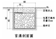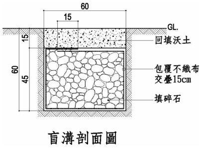(C)不織布可以用防水布取代 (D)為加速排水,可於盲溝底層碎石中埋置透水管 。