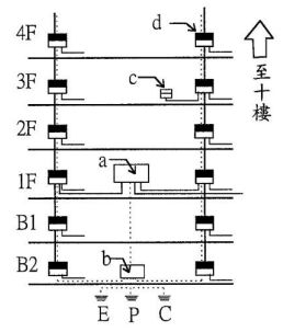 (A)a 為主配線箱,b為總接地箱 (B)a 為總接地箱,b 為 MDF (C)a 為 MDF,b 為總接地箱 (D)a為總接地箱,b 為主配線箱 。