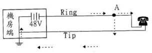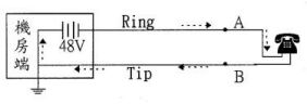 (A)呈短路 (B)無電流流通 (C)有一甚小的電位差 (D)有 48VDC 。