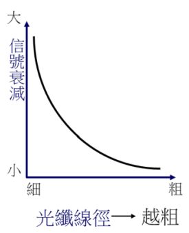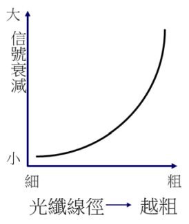 (A)(a)為傳統單模態光纖,傳送 1310nm 時為零色散 (B)(a)為傳統單模態光纖,截止波在 1400~1500nm 之間 (C)(b)為耐彎光纖(Bending-loss Insensitive Fiber),在 1324nm 時為零色散 (D)(b)為色散遷移光纖(Dispersion Shifted Fiber),在 1550nm 時色散趨近零 。