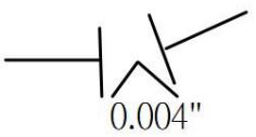 (A)平行偏差 (B)聯軸器上開 0.004" (C)聯軸器下開 0.004" (D)角度偏差 。