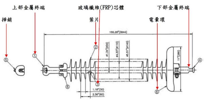 (A)聚合礙子(Polymer Insulator) (B)掛線夾板 (C)拉線夾板 (D)壓縮型終端夾板 。
