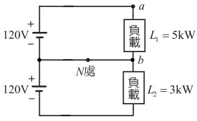 34. 如右圖所示,當供電系統平衡時,試求 ab 間的電壓為多少 V ? [台鐵 113] (A)0V (B)120V (C)150V (D)240V