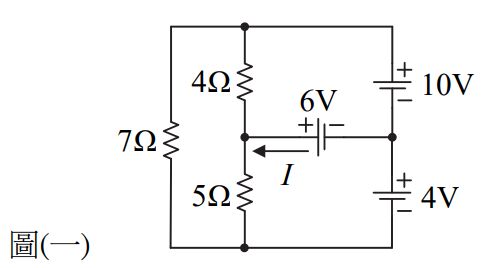 3. 如圖(一)所示電路,電流I為何? (A)1 A (B)2 A (C)3 A (D)4 A