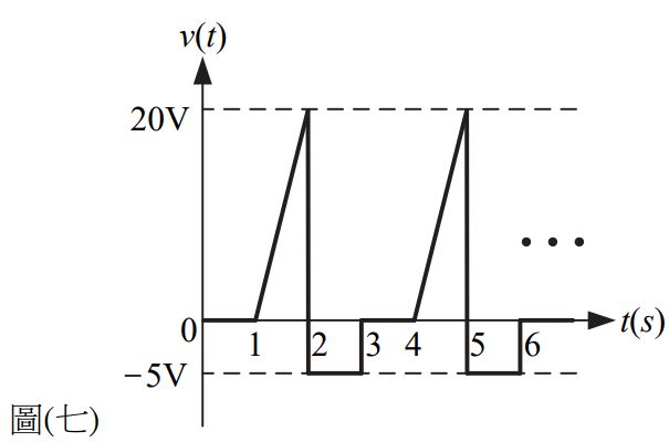 12. 如圖(七)所示週期電壓v(t),其電壓平均值為何? (A)(B)(C) (D)