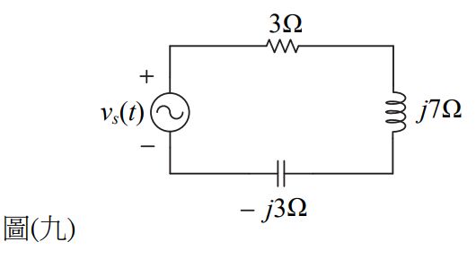 14. 如圖(九)所示RLC負載電路,若vs(t)=110sin(377t) V,則負載的平均功率P及其功率因數PF分別為何? (A)P=2904 W、PF=0.6超前 (B)P=2904 W、PF=0.6落後 (C)P=1452 W、PF=0.6超前 (D)P=1452 W、PF=0.6落後