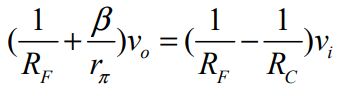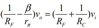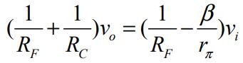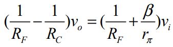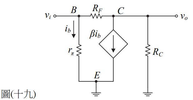 30. 此放大電路之交流等效電路如圖(十九)所示,若選擇 vi及vo為節點電壓,則vo及vi關係式為何? (A)(B)(C)(D)