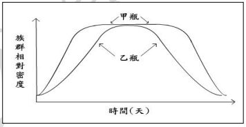 3.利用兩個 0.5 公升大小的錐形瓶培養大團藻,甲瓶中有10 公克土壤、200cc 水;乙瓶中有10 公克土壤、400cc 水,加入一些大團藻活體使其密度相同,再密 封,在相同環境中培養。每天記錄其族群的變化,幾天後發現其相對密度的變化如圖。某生提出「瓶中礦物質濃度不同導致甲、乙兩瓶中大團藻生長曲線的不同」這樣的說法,這在科學研究上,應屬於何者? (A)觀察 (B)假設 (C)推論(D)建模