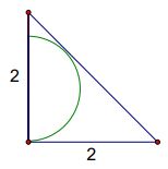 3. 如下圖,一半圓內切於一等腰直角三角形,如果此三角形的股長為2,則此半圓的直徑為何?