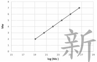 40. 承第39題,剪切模數μ = 3×10¹¹ dyne/cm²,已知cos 45° = 0.707,sin 45° = 0.707,而不同的Mo(單位為dyne-cm)對應的Mw如下圖所示。此地震的震矩規模為多少? (A)~4.5 (B)~5.5 (C)~6.5 (D)~7.5