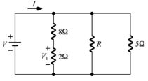 22. 如圖所示電路,若 V1 = 4 V,I = 7 A,則電阻 R 約為多少 Ω? (A)5 (B)10 (C)15 (D)20