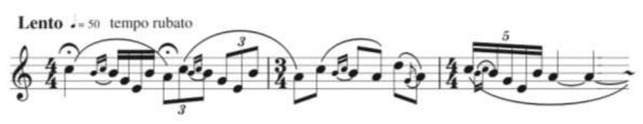 7. 承上,此樂段作曲者用何種音樂內涵呈現欲表達之意念? (A) 音色 (B) 曲式 (C) 速度 (D) 和聲