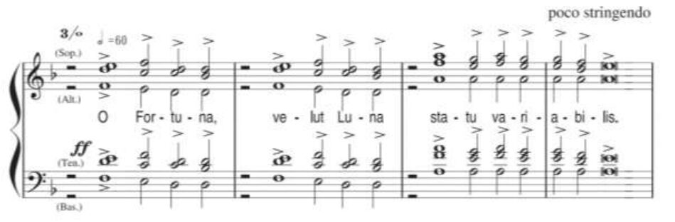 8. 關於下圖譜例的敘述,何者有誤? (A) 此樂曲為合唱與鋼琴編制之作品 (B) 作曲家為德國人 (C) 此譜例為該作品之序曲 (D) 作品與中世紀的文稿有關