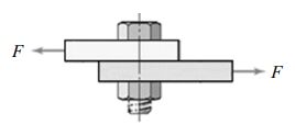 三、下圖的二鋼板利用螺栓來接合以承受水平拉力 F 的作用,已知該螺栓抵抗剪力失效的剪應力面積 As = 225.2 mm2,剪應力降伏強度 Sys = 350 MPa。考慮安全因數 n = 2 條件下,求該螺栓的容許剪應力τall,並求其抵抗剪力失效時可承受的最大拉力 F。若在相同的容許剪應力下,當拉力提升為50000 N,試求螺栓所需的最小直徑以避免剪力失效。(25 分)