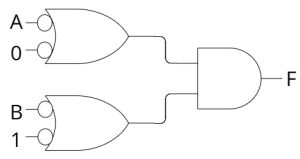 (A) F=A·B (B) F=B' (C) F=0 (D) F=A'+B