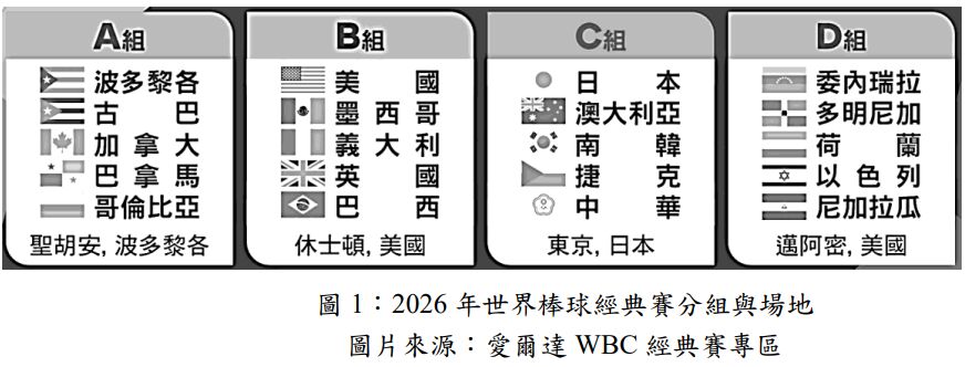 2. 依圖1(2026年世界棒球經典賽分組與場地),請設計符合高中地理內容的題組題兩題,可跨冊或跨章節,並檢附參考答案及選項解析。