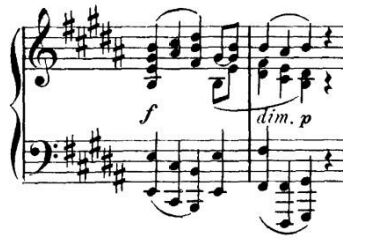 1. 請以此譜例,設計「升高中音樂班術科測驗『樂理及基礎和聲』新式題型」 之題組,共三小題,內容可包含樂理、音樂常識、和聲、曲式等,請考量學生 程度,設計不同難度或深度之題目與解答(如有詳解亦可寫出)。